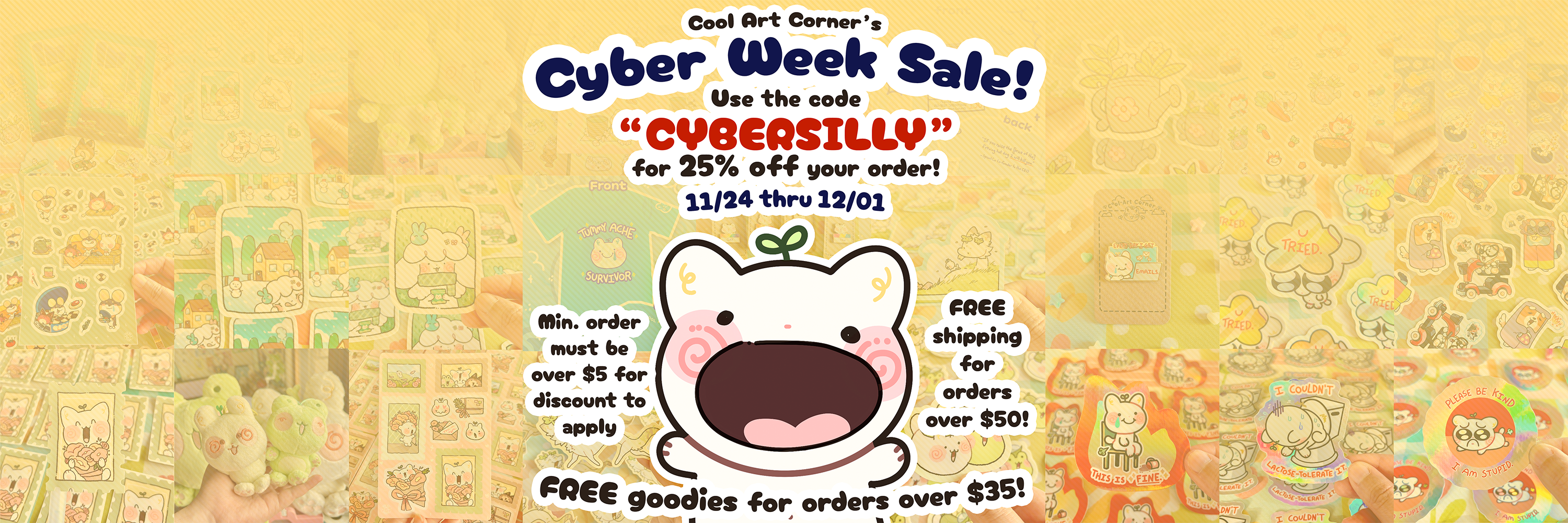 Cool Art Corner is a shop that sells Cool Art Wares! Are you a fan of adorable animals doing silly things? Or maybe you’re all about those animal booties? Either way, you’re in the right spot! Cool Art Corner offers everything from fun, relatable apparel and cuddly plushies (yes, with booties!) to vibrant enamel pins, eye-catching acrylic charms, and unique handmade prints. With so much to explore, we’ve got the perfect piece to make you smile!