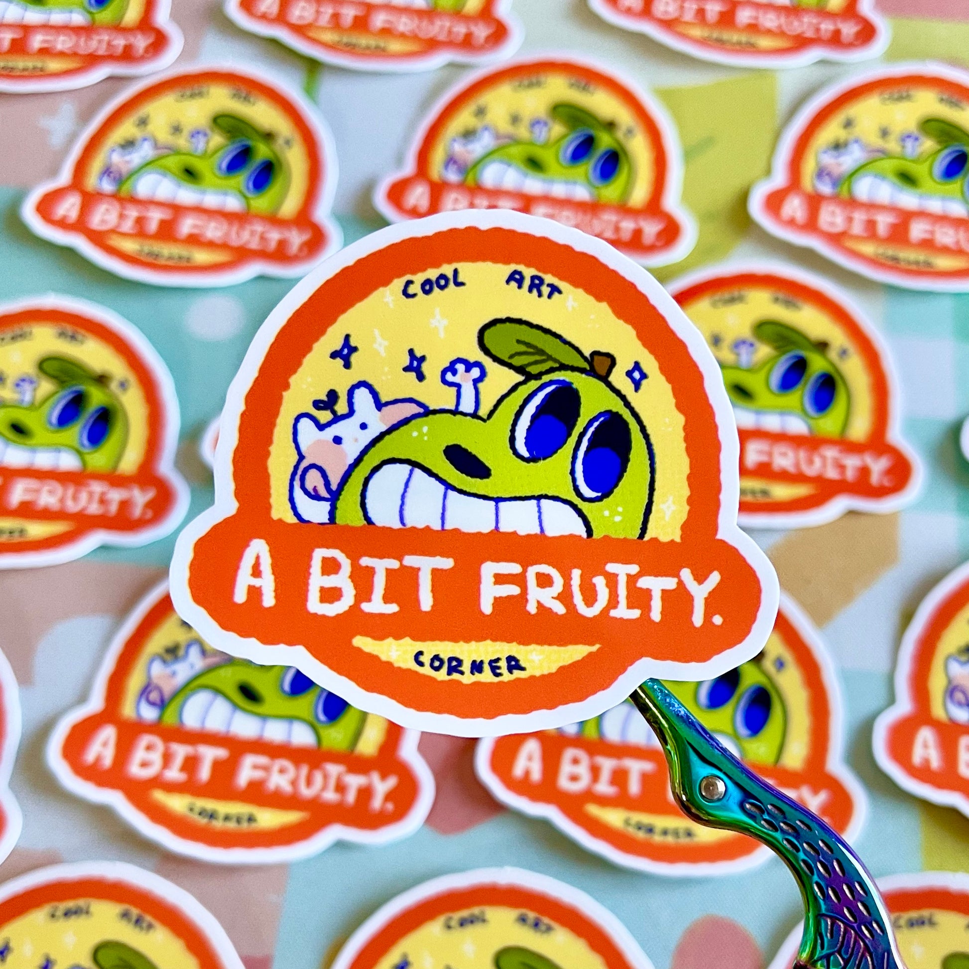 Add a pop of fun to your sticker collection with A Bit Fruity Sticker! This playful sticker adds a touch of whimsy and humor to any surface. Punny and colorful, it's the perfect addition for anyone who loves a bit of quirkiness.