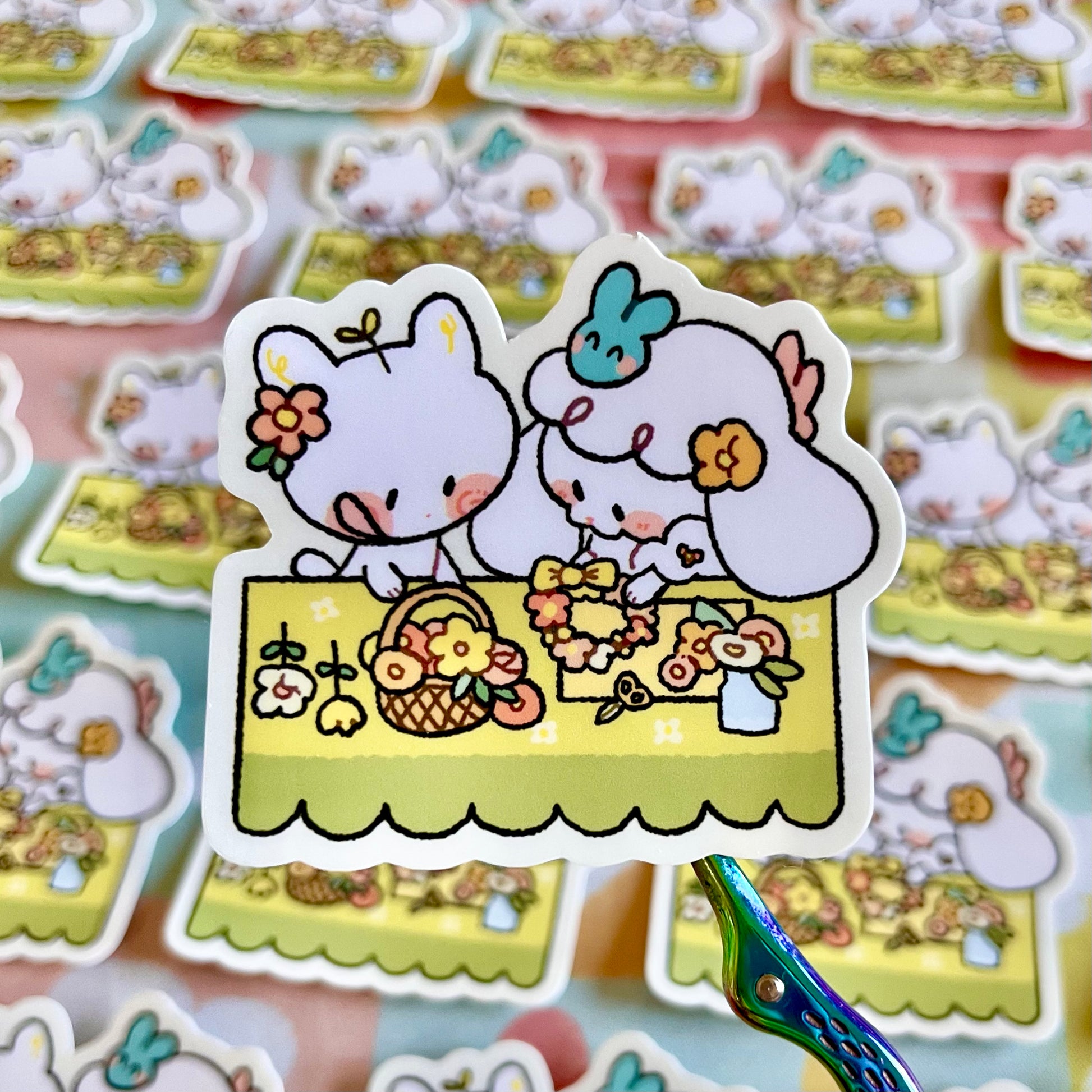 Looking for a sweet, playful touch to your belongings? Look no further than our Flower Friendship Sticker featuring Sprouts the Kitten and Chu-Chu the Lamb making flower crowns! This cute addition to your collection will brighten your day and bring a smile to your face!