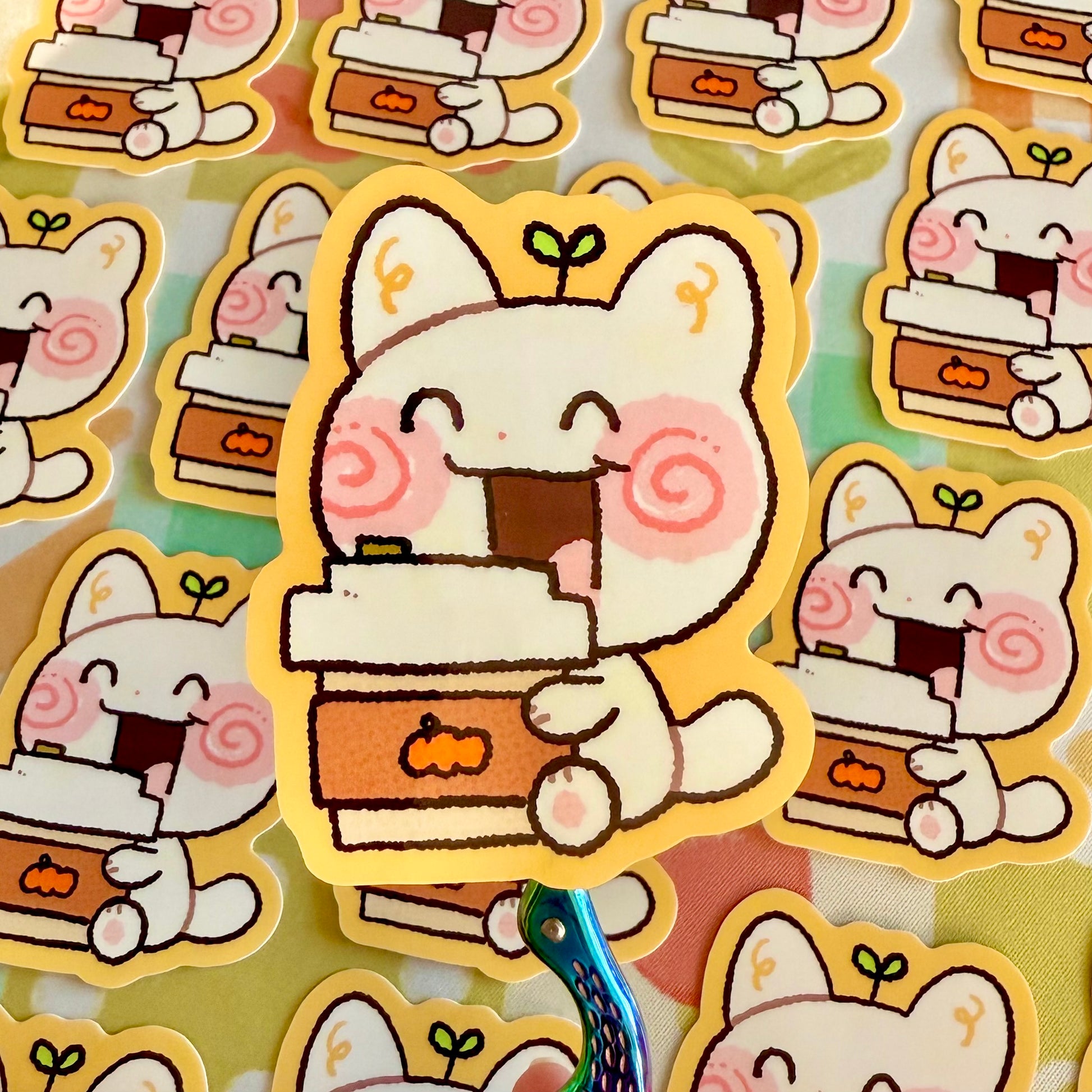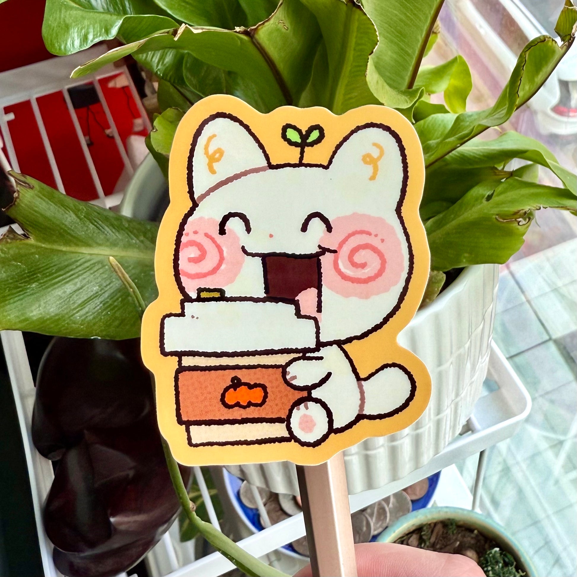 Show off your love for pumpkin spice lattes with this adorable sticker featuring Sprouts the kitten! Perfect for any collection, it's a must-have for all pumpkin spice enthusiasts. Mmm!