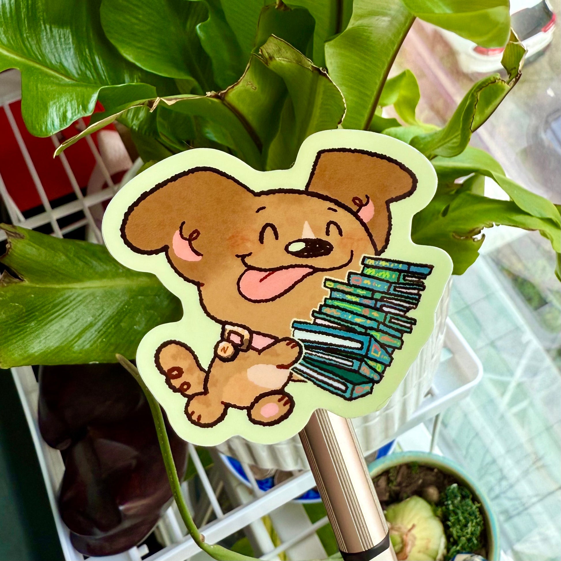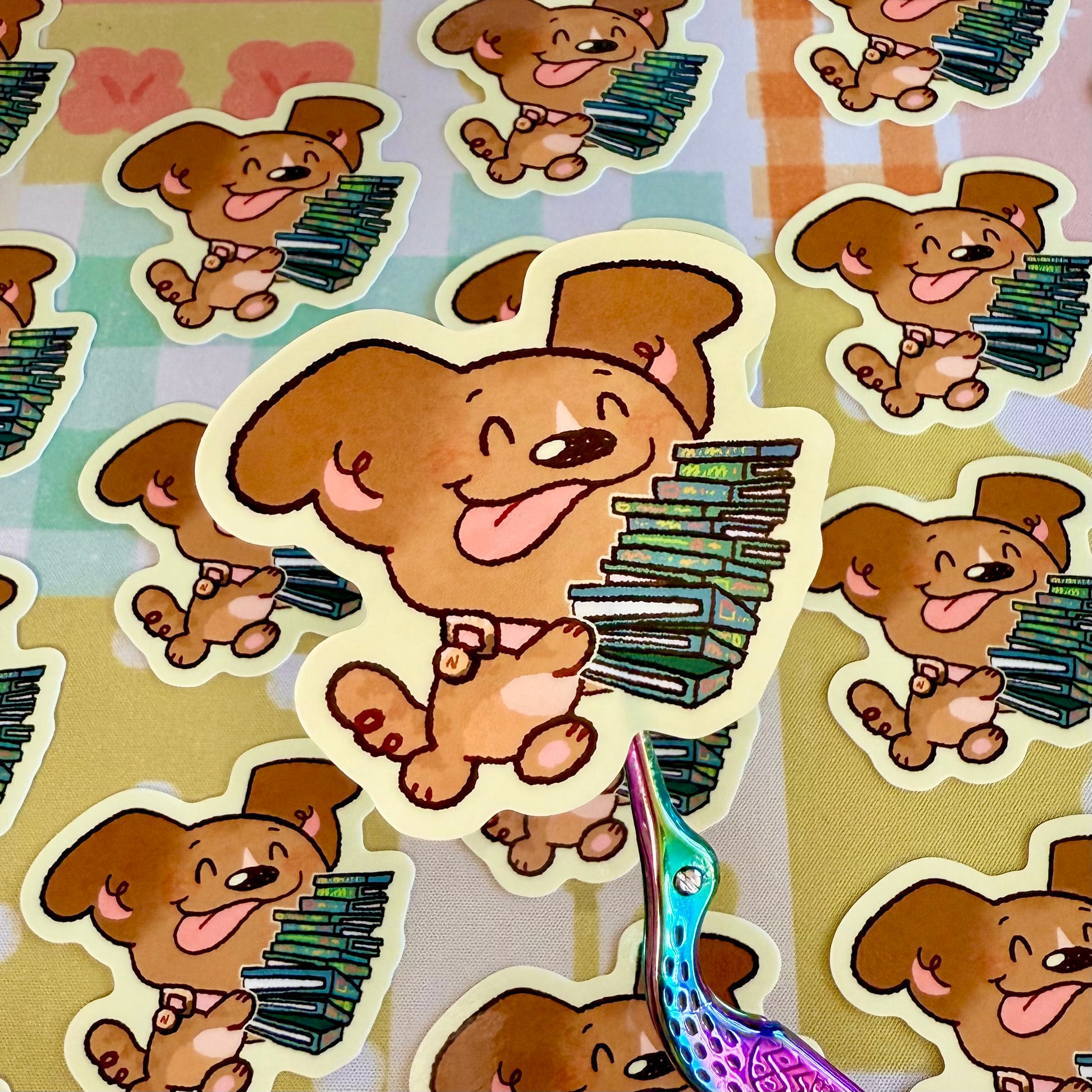 Add some pawsome personality to your collection with this Puppy Dog Books Sticker! Featuring a cute pup with a biiiig stack of books, this sticker is perfect for book lovers and dog lovers alike. It's sure to bring a smile to your face every time you see it!